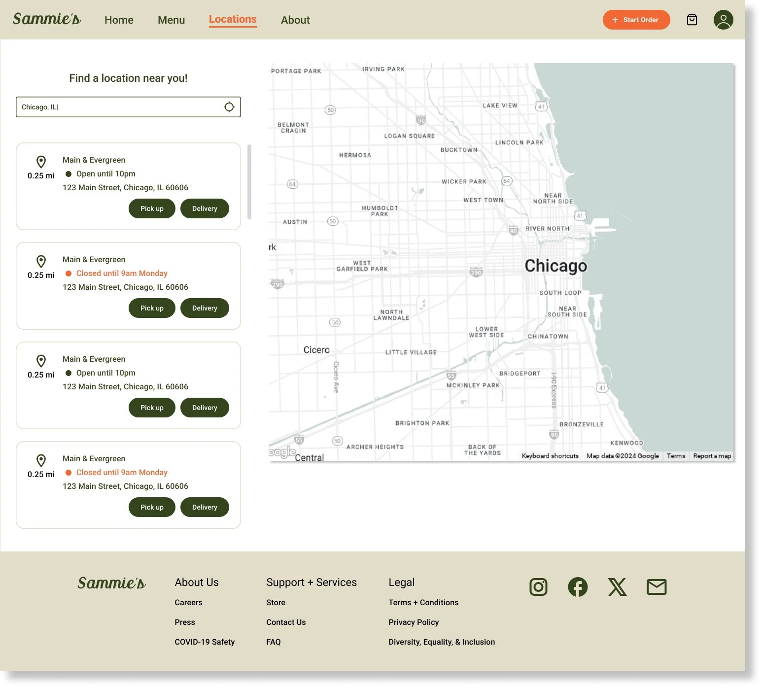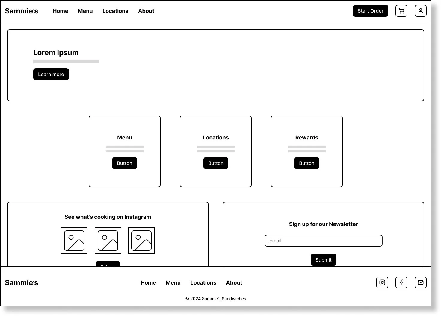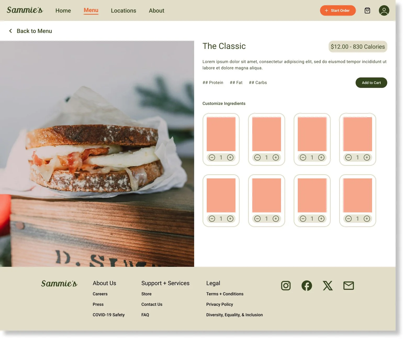 Creating a sitemap helped me jump start the design process and organize how the Sammie’s Website would be structured.