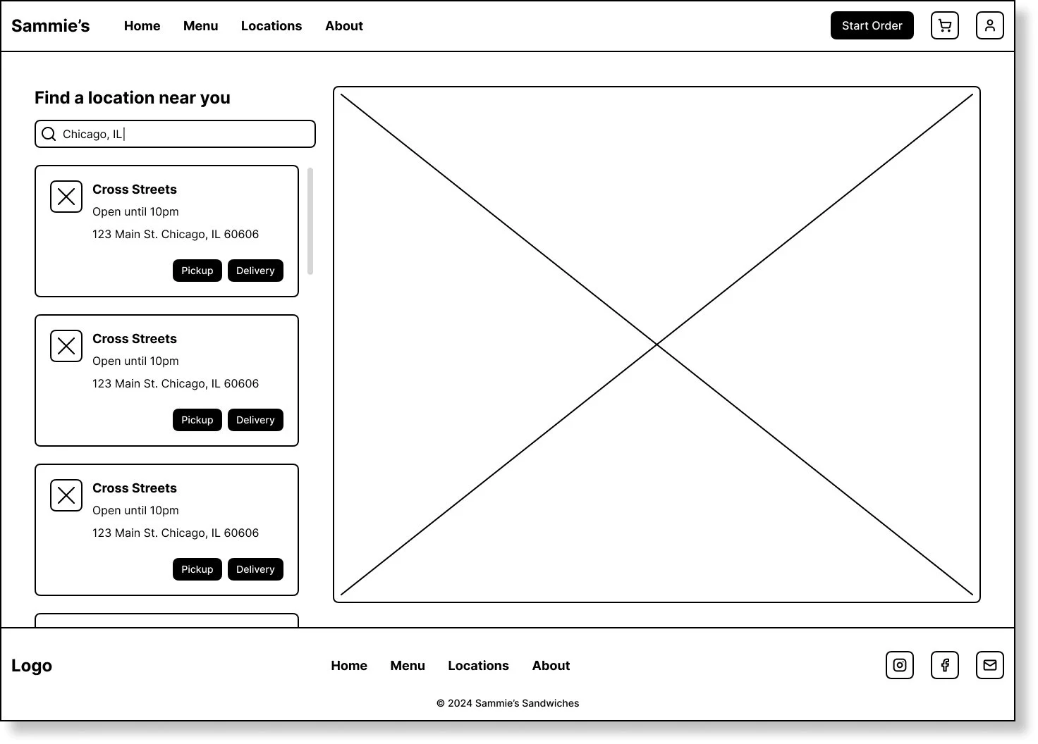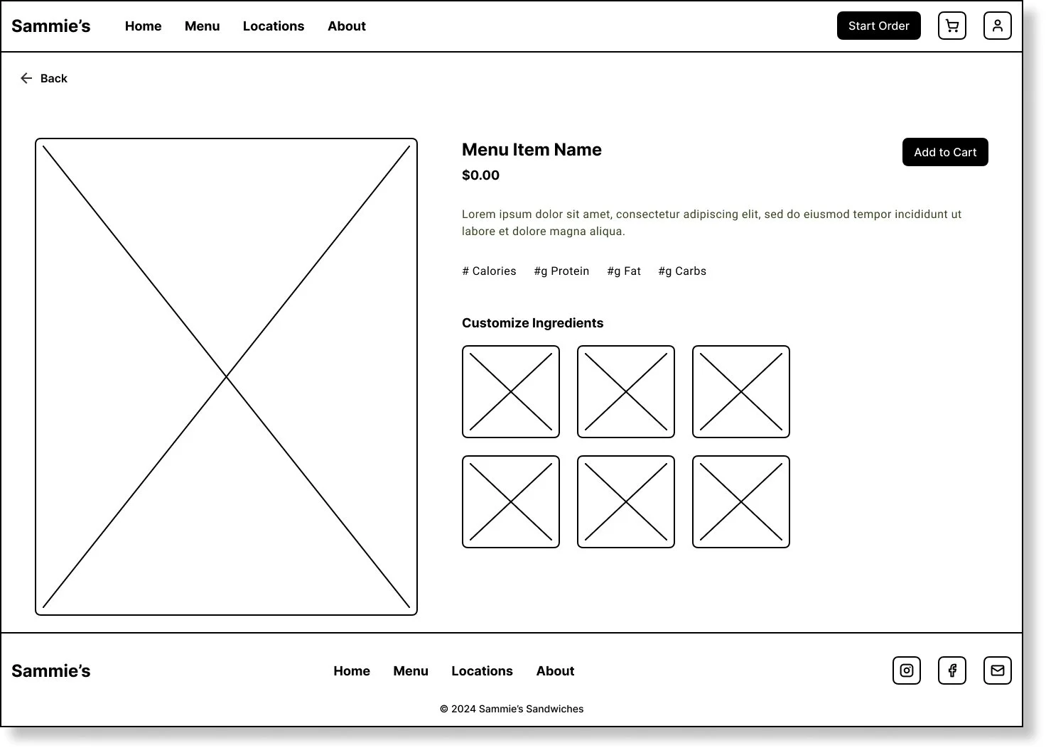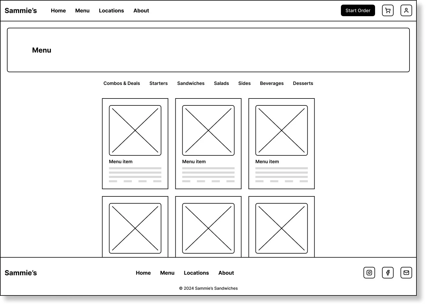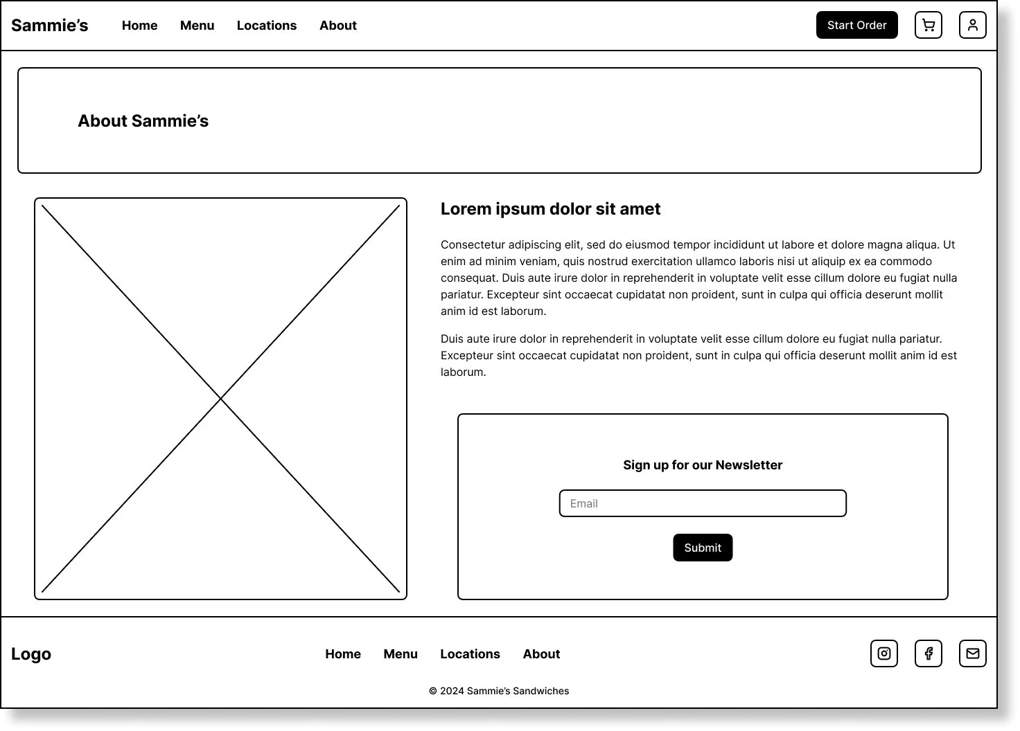 Creating a sitemap helped me jump start the design process and organize how the Sammie’s Website would be structured.