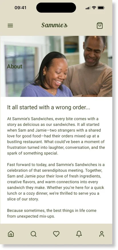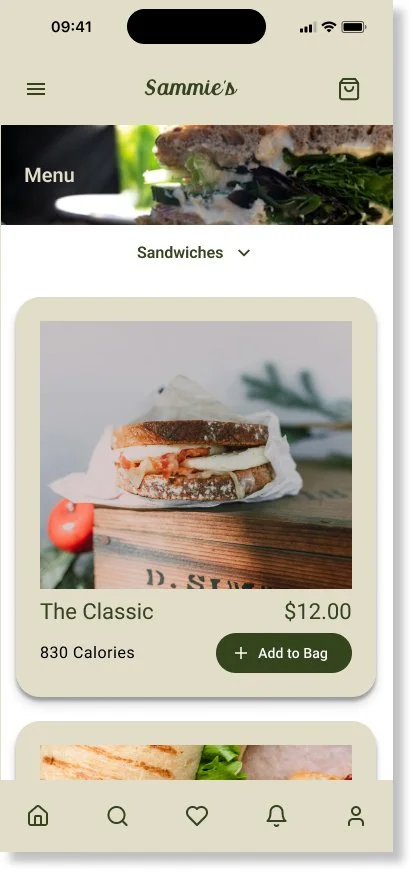 UX designer creating a website and mobile app for Sammie’s from conception to delivery.