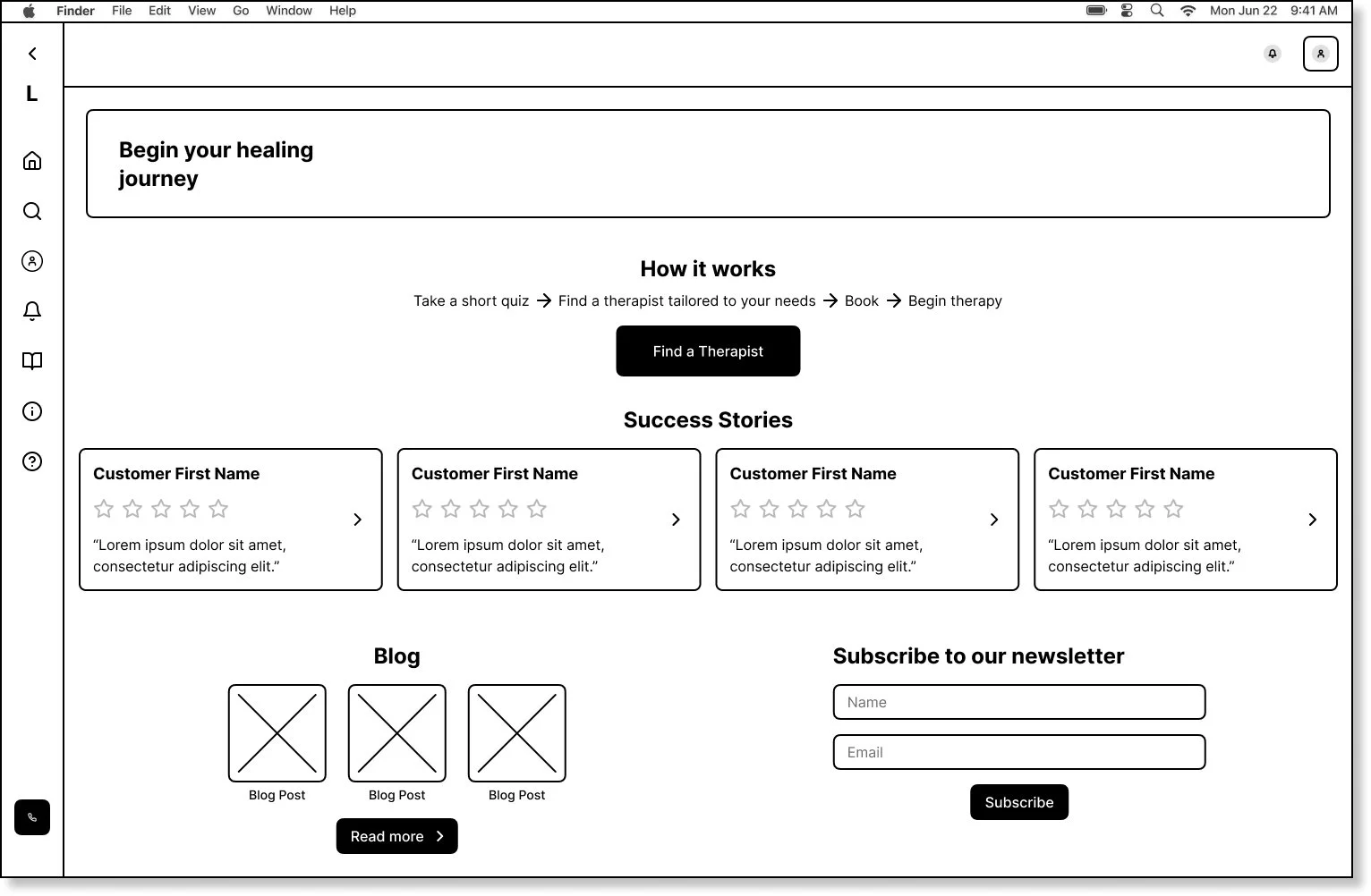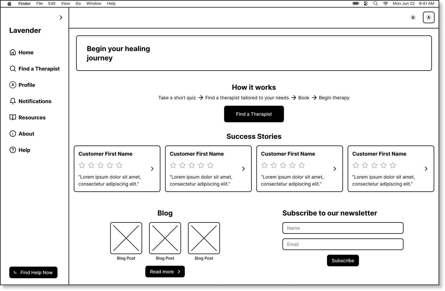 Creating the information architecture helped me jump start the design process and organize how the Lavender Therapy Platform would be structured.